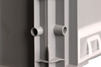 ●箱體底部有防滑底紋,增加摩擦力,滿足各類物流作業(yè)方式的使用要求